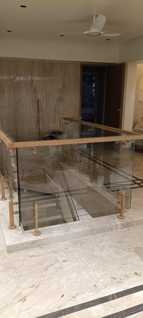 Glass Railing wooden Finish