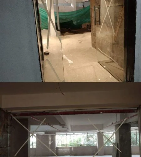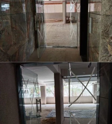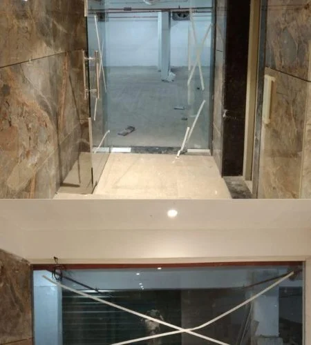 These partition walls are made with Toughened Glass which is a safety glass that does not shatter into sharp pieces when it breaks. It contains a process called tempering to make it more resistant to breaking and less likely to break into large sharp pieces. Toughened glass partition is generally made in 10mm, 12mm, or plus (depending upon purpose) with clear toughened glass. There are options of frosted / back-painted / tinted (sandwiched by tinted + clear glass). This can be also protected by using a special type of sticking tape. If required, design/logo on the glass.