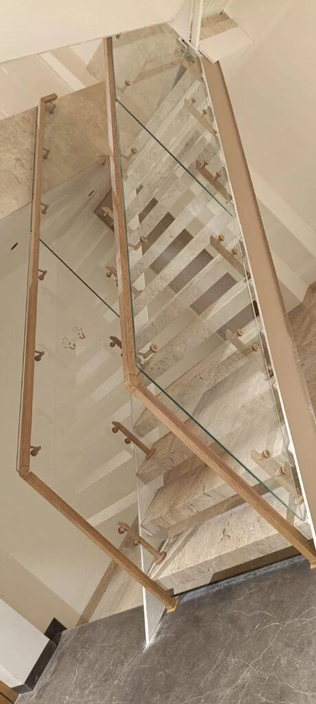 Glass Railing wooden Finish