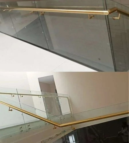 Add a touch of luxury and timeless elegance to your space with our Glass Railing System featuring a Golden or Rose Gold Stainless Steel Finish.